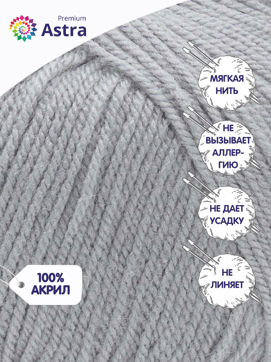 Купить Пряжа для вязания Astra Premium 'Амигуруми', 50г, 175м (100% акрил) (168 светло-серый), 6 мотков
