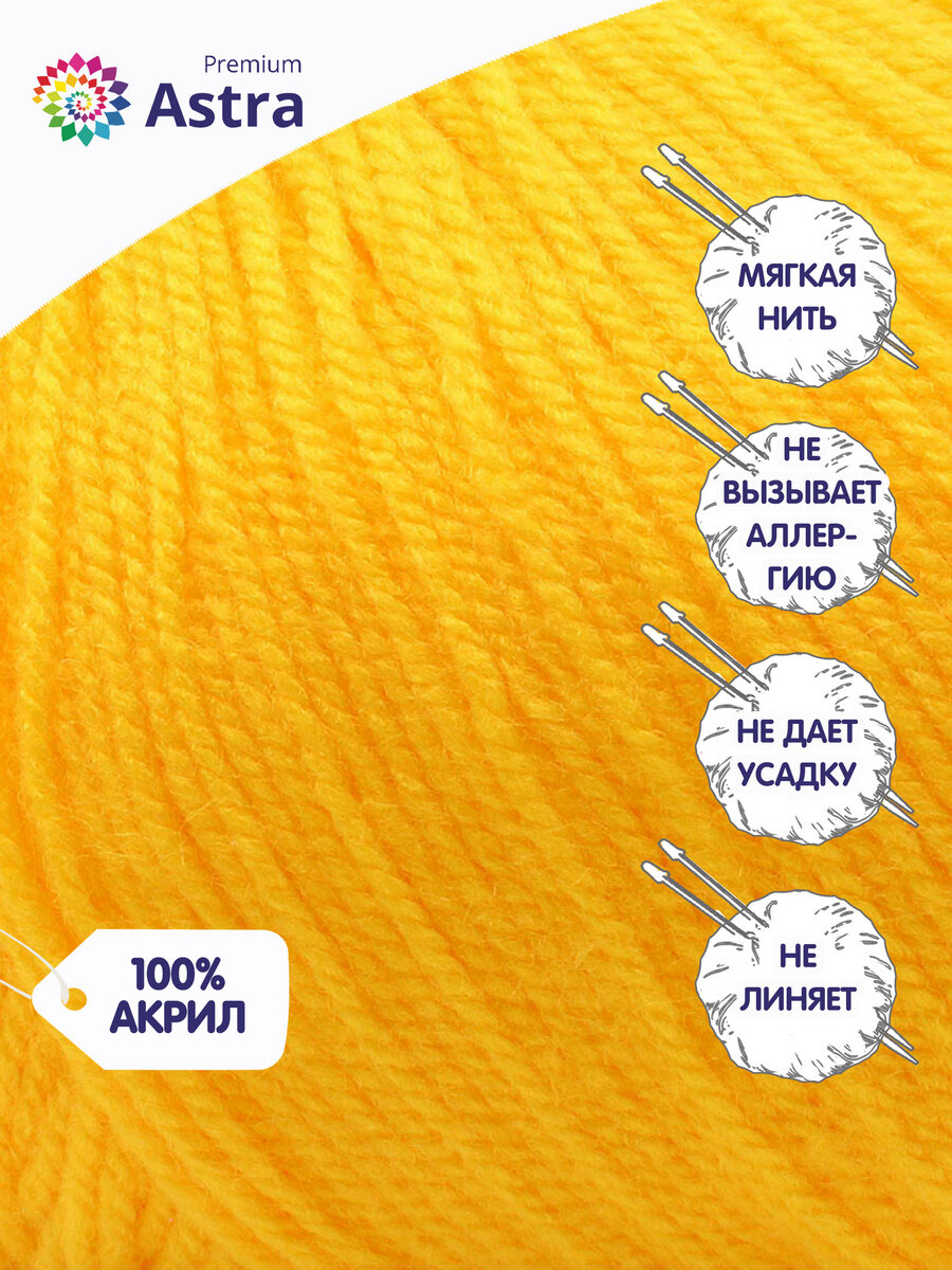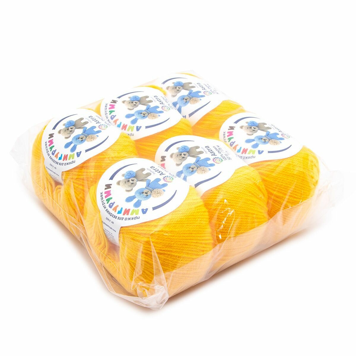 Пряжа для вязания Astra Premium 'Амигуруми' 50г, 175м (100% акрил) (104 желтый), 6 мотков