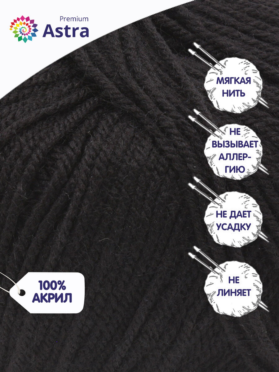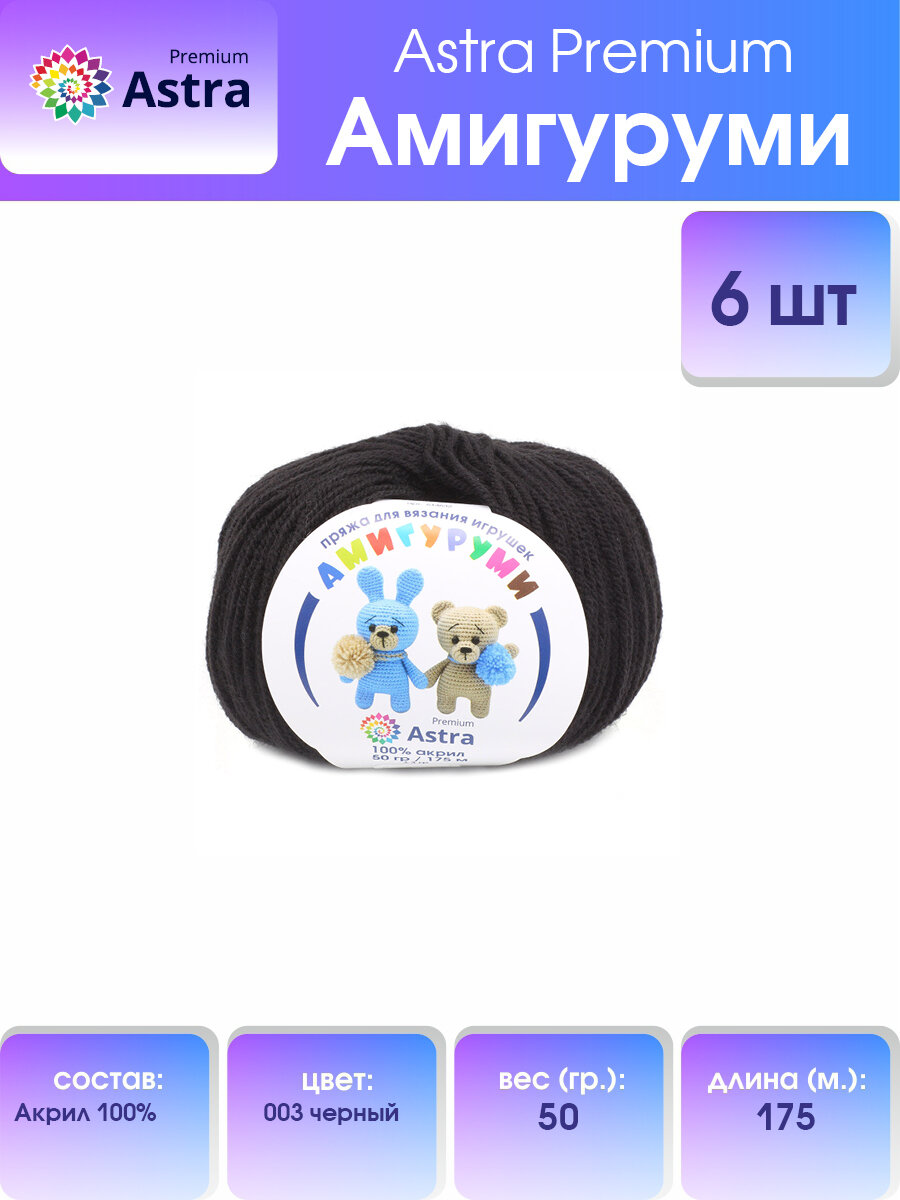 Пряжа Astra Premium "Амигуруми", 50 гр 175 м, 100% акрил, 003 черный, 6 шт