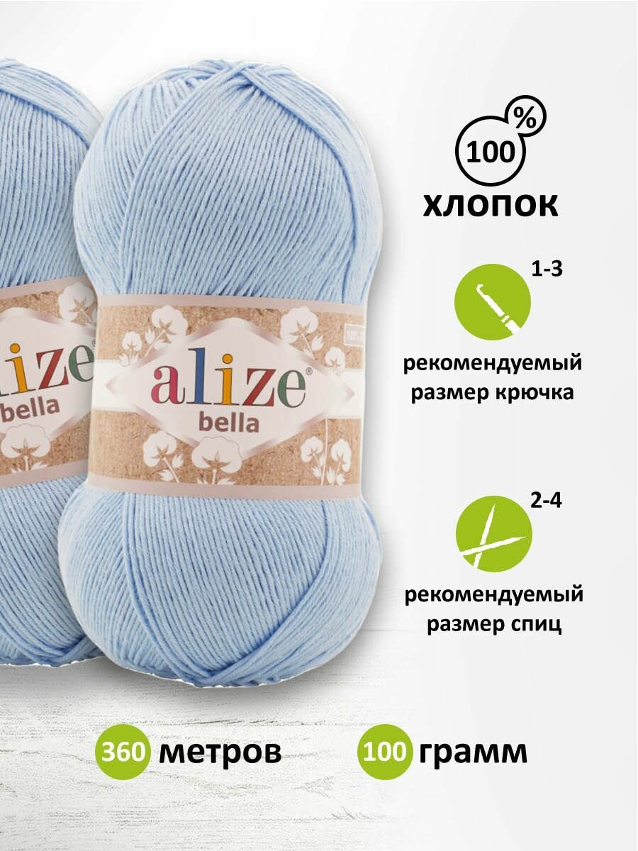 Пряжа Alize Bella 100 голубой (40), 100%хлопок, 360м, 100г, 1шт