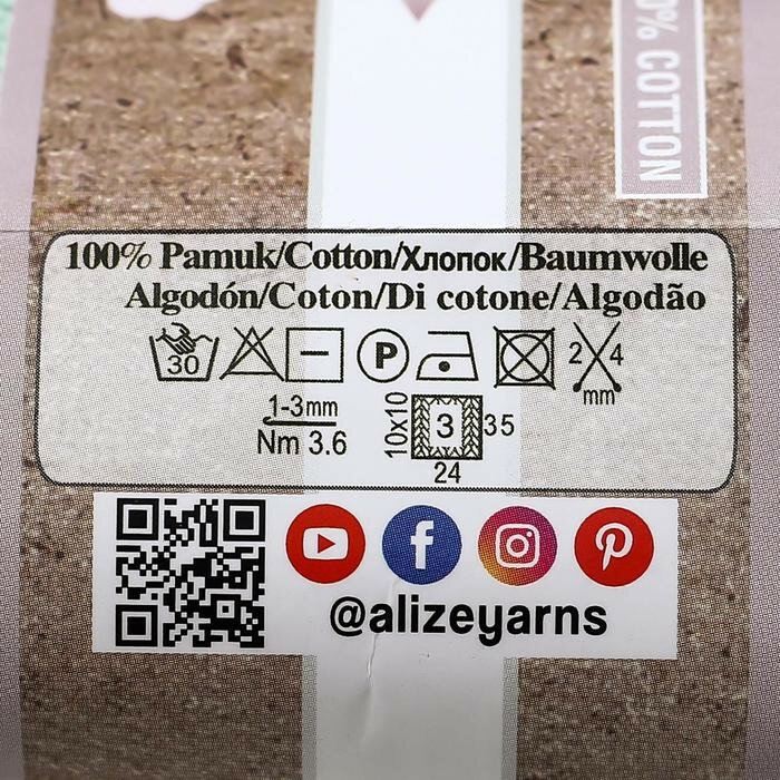 СохранитьПряжа Alize Bella 100 мята (266), 100%хлопок, 360м, 100г, 1шт интересное: