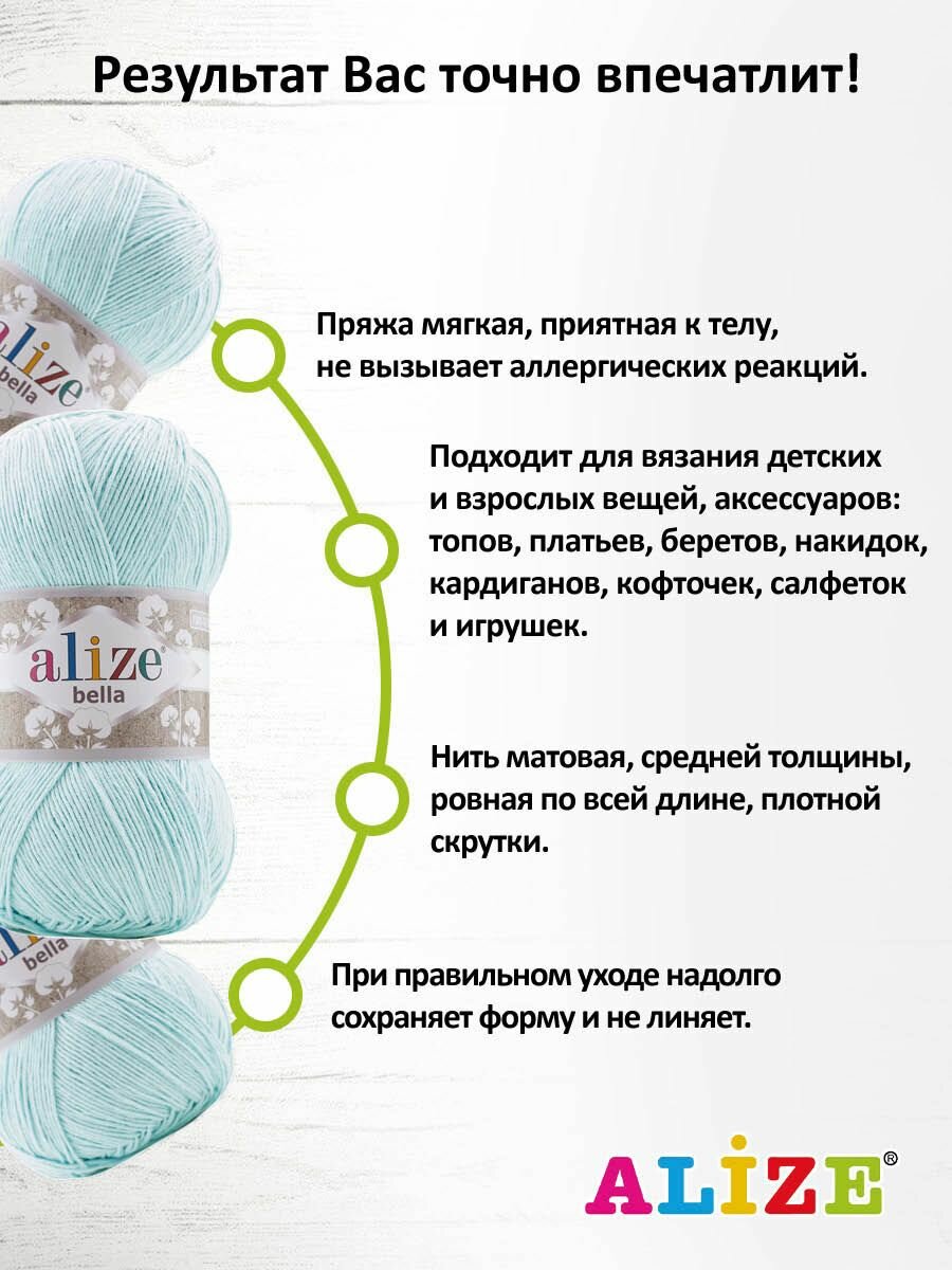 Пряжа Alize Bella 100 мята (266), 100%хлопок, 360м, 100г, 1шт