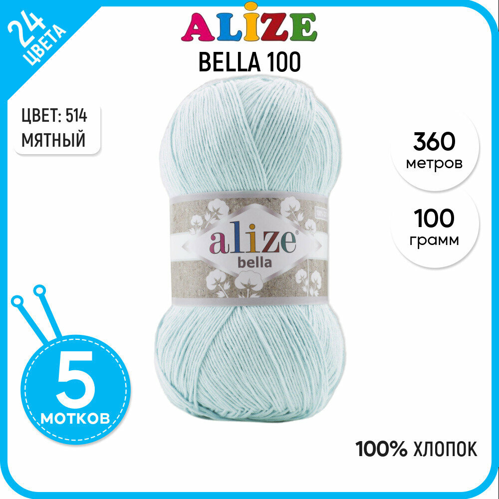 Пряжа Alize Bella 100 мята (266), 100%хлопок, 360м, 100г, 5шт