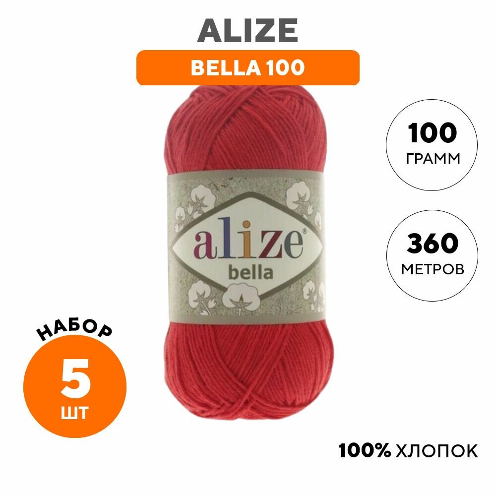 Пряжа ALIZE "Bella 100", 100 гр 360 м, 100% хлопок, 56 красный, 5 шт