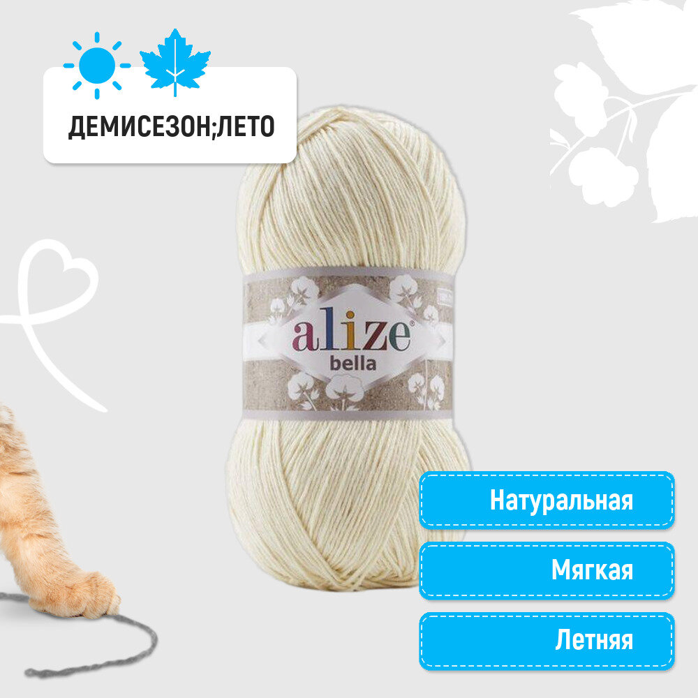 Пряжа Alize Bella 100 молочный (62), 100%хлопок, 360м, 100г, 1шт