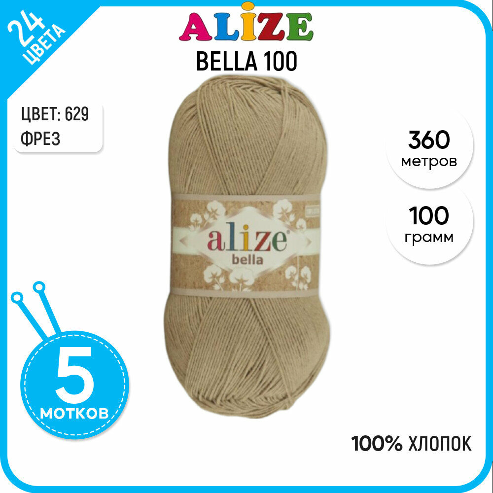 Пряжа для вязания Alize Bella 100 76 бежевый, 100 г, 360 м, 5 штук