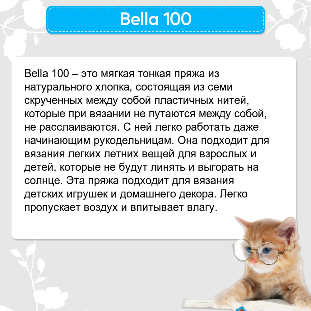 Пряжа "Bella ", цвет: 01 - Молочный, 1 шт, Хлопок 100%, 100 гр. 360 м.