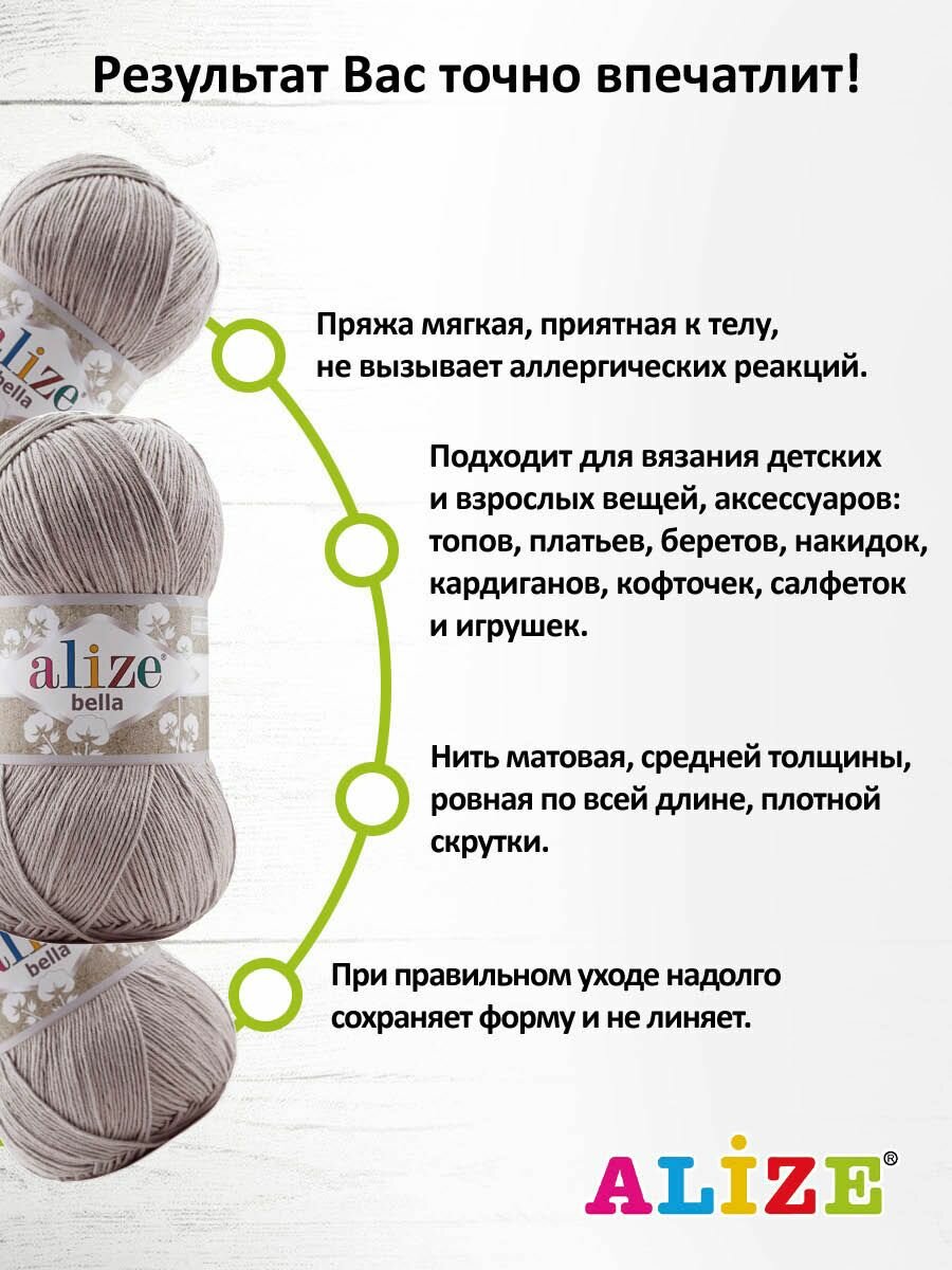 СохранитьПряжа Alize Bella 100 норка (629), 100%хлопок, 360м, 100г, 5шт интересное: