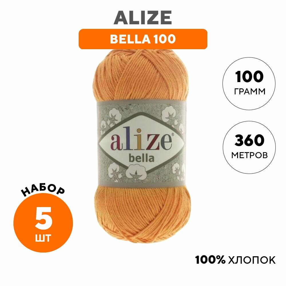 Купить Пряжа для вязания Alize Bella 100 83 тыква, 100 г, 360 м, 5 штук