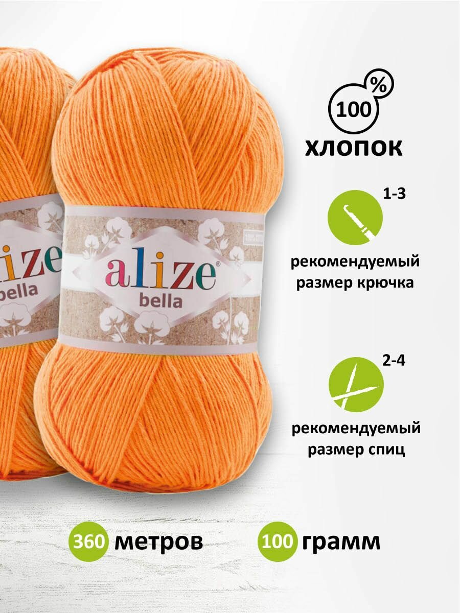 Пряжа Alize Bella 100 тыква (83), 100%хлопок, 360м, 100г, 2шт
