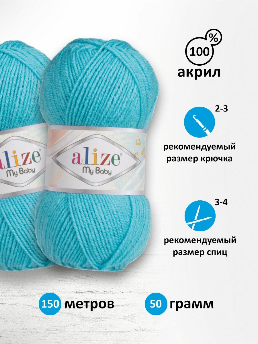 Пряжа MY BABY (Alize), бирюза - 287, 100% акрил, 5 мотков, 50 г, 150 м.