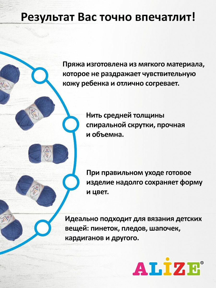 СохранитьПряжа ALIZE 'My baby', 50г, 150м (100% акрил) (353 джинс), 5 мотков интересное: