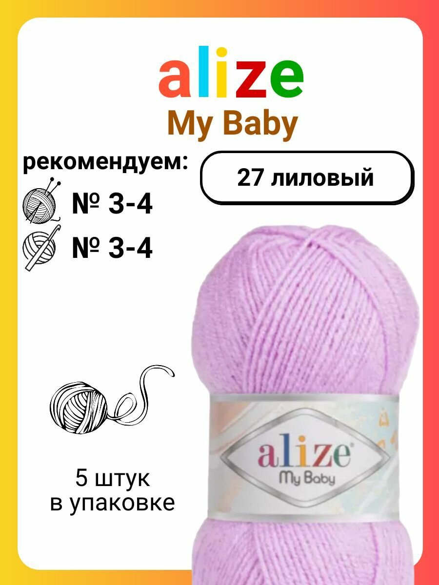 Купить Пряжа Alize My baby светло-сиреневый (27), 100%акрил, 150м, 50г, 5шт