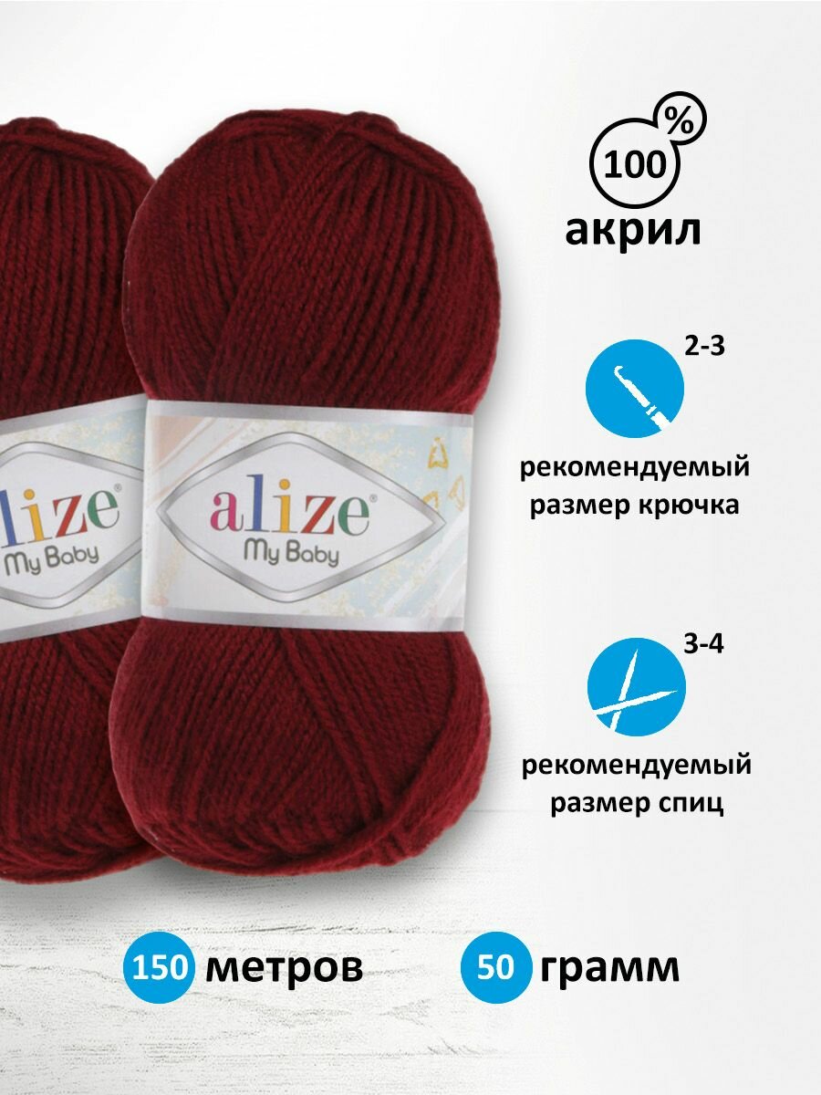 Пряжа Alize "My baby" 50г 150м (100% акрил), цвет: 106 темно-красный, 1 шт.