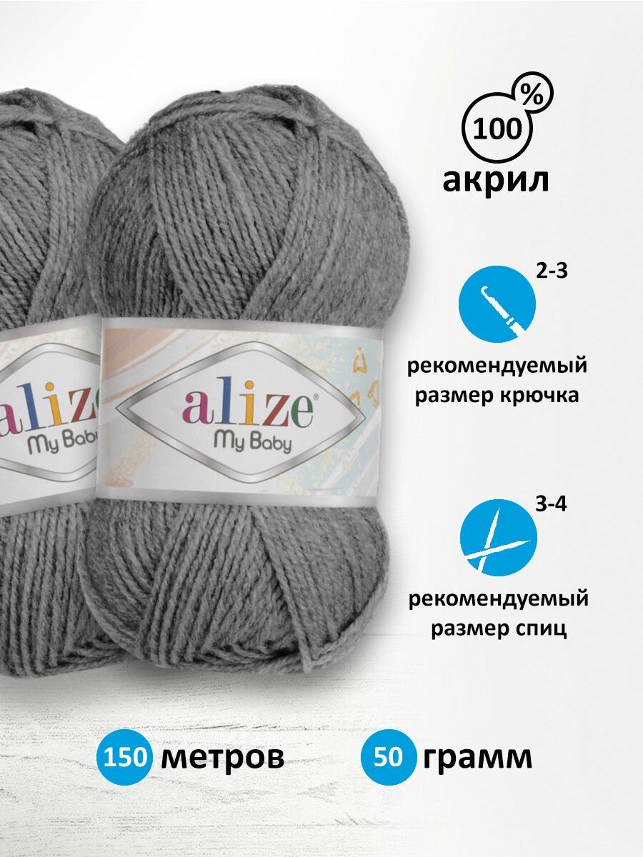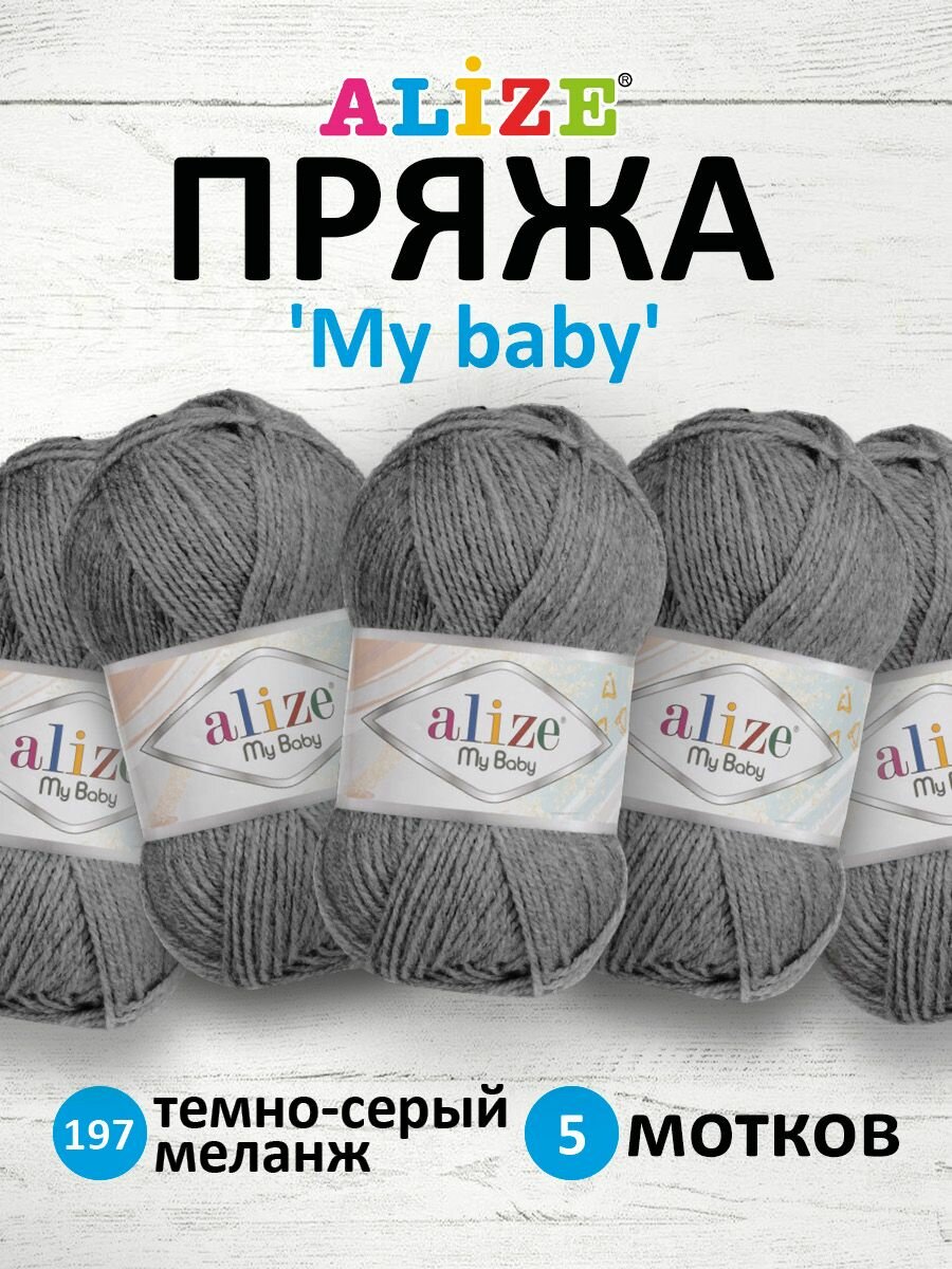 Купить Пряжа для вязания Alize My Baby (197) темно-серый, 50 г, 150 м, 5 штук