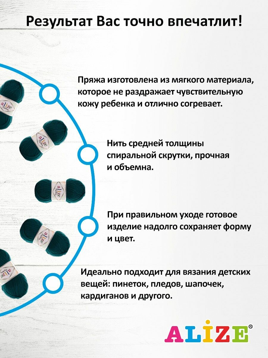 СохранитьПряжа для вязания Alize My Baby (212) петроль, 50 г, 150 м, 5 штук интересное: