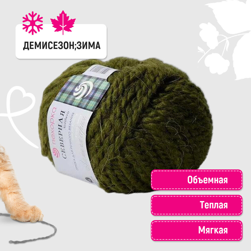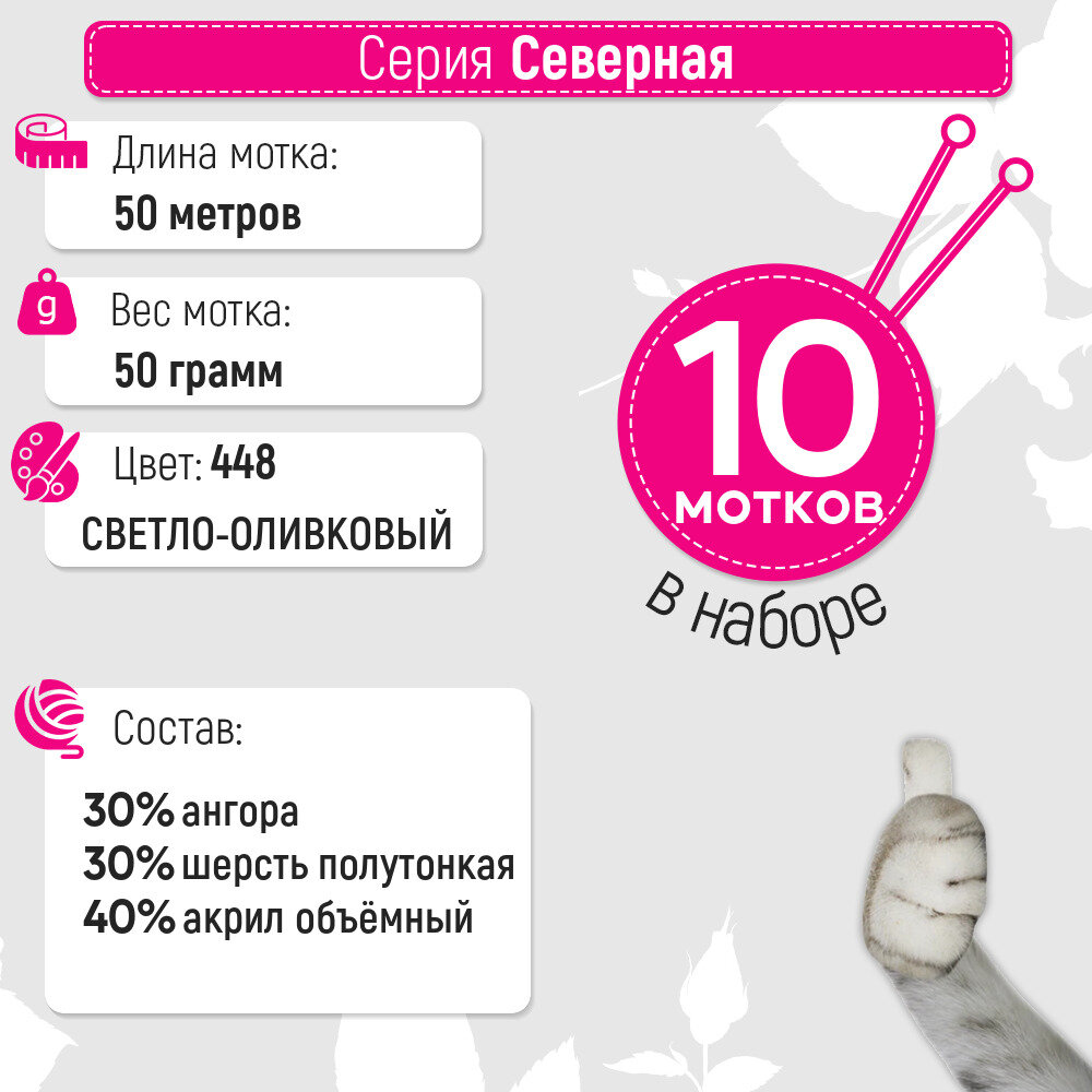 Пряжа Северная (Пехорка), Св. оливковый - 448, 30% ангора, 30% шерсть П/Т, 40% акрил высокообъемный, 10 мотков, 50 г, 50 м.