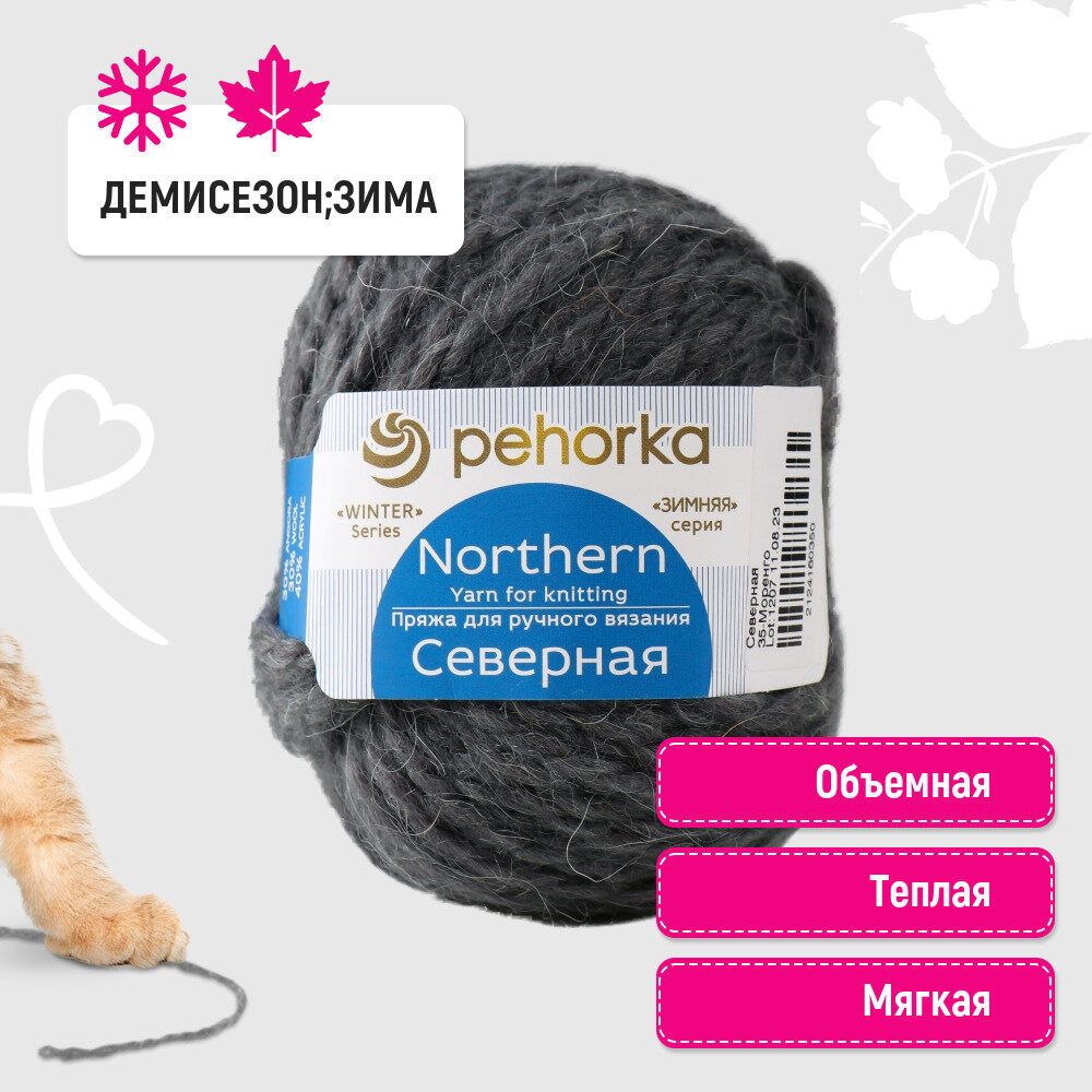 Пряжа Пехорка Северная черный (2), 30%ангора/30%полутонкая шерсть/40%высокообьёмный акрил, 50м, 50г, 1шт