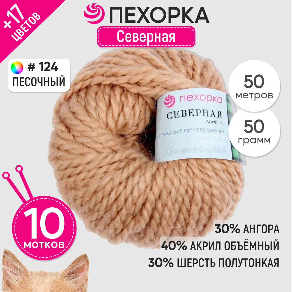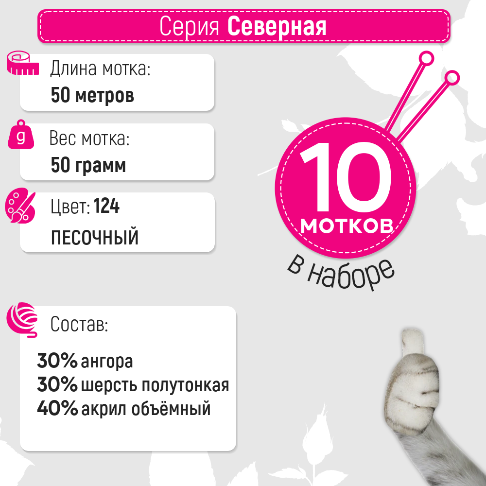 Пряжа Пехорский текстиль "Северная", 40% акрил, 30% ангора, 30% полутонкая шерсть, 50+-3 м, №124, цвет Песочный, 10 шт по 50 г