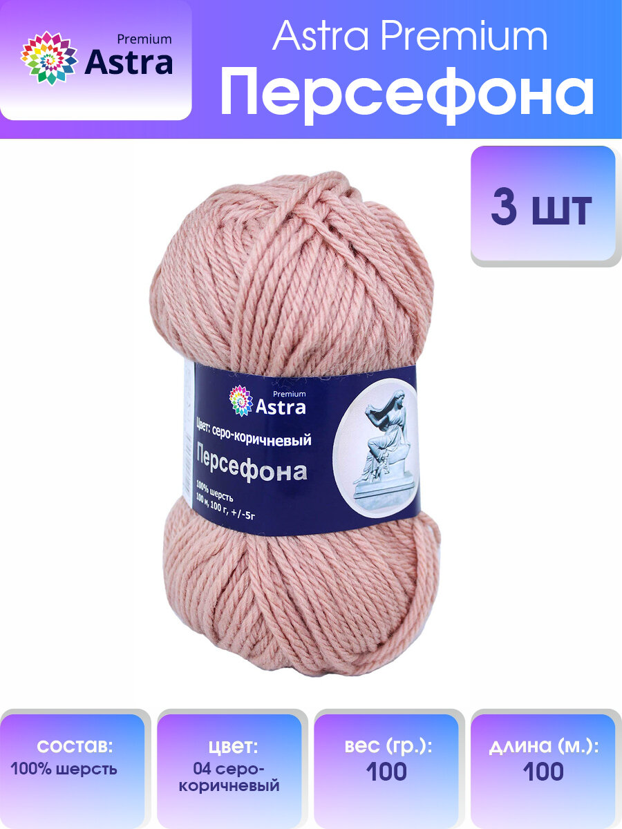 СохранитьПряжа Astra Premium "Персефона", 100 гр 100 м, 100% шерсть, 04 серо-коричневый, 3 шт интересное: