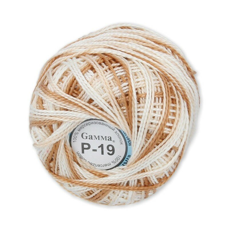 Купить Пряжа 'Gamma' Ирис меланж 100% хлопок 10 г 82 м цвет Р-19 бежевый-белый