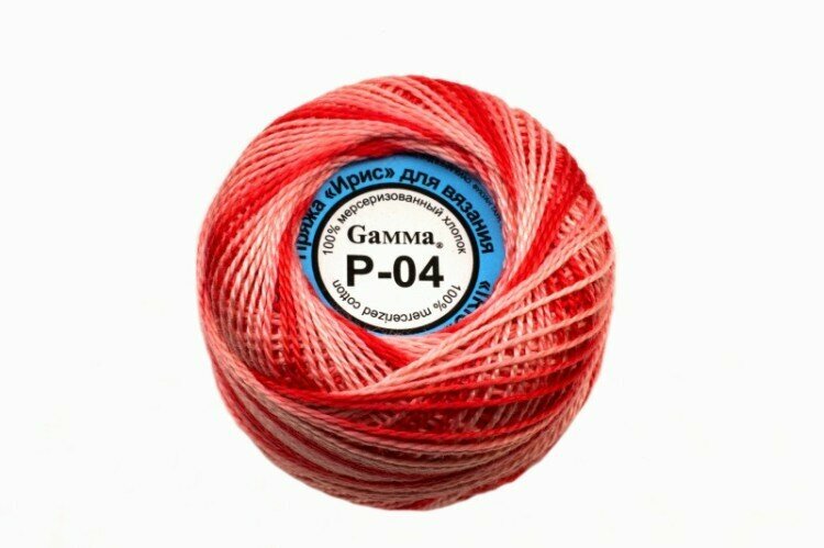 Пряжа "Gamma" Ирис меланж 100% хлопок 10 г 82 м Р-05 т. красный-т. бордовый