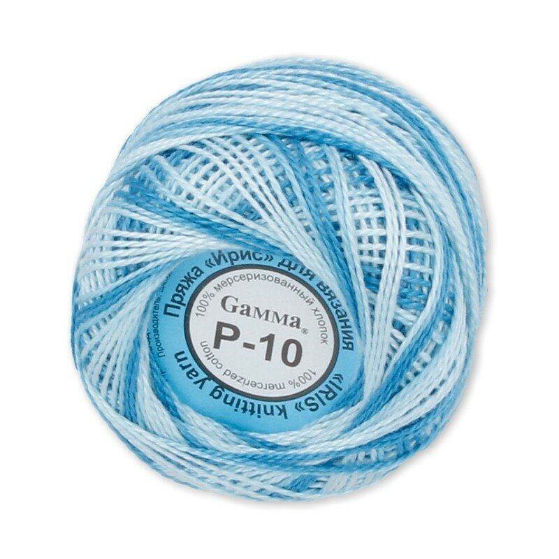 Пряжа "Gamma" Ирис меланж 100% хлопок 10 шт.х10г 82м №Р-10 голубой-белый