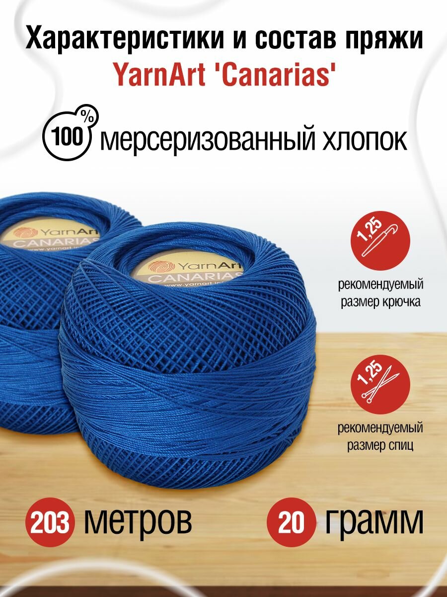 Пряжа YarnArt Canarias ярко-синий (4915), 100%мерсеризованный хлопок, 203м, 20г, 5шт