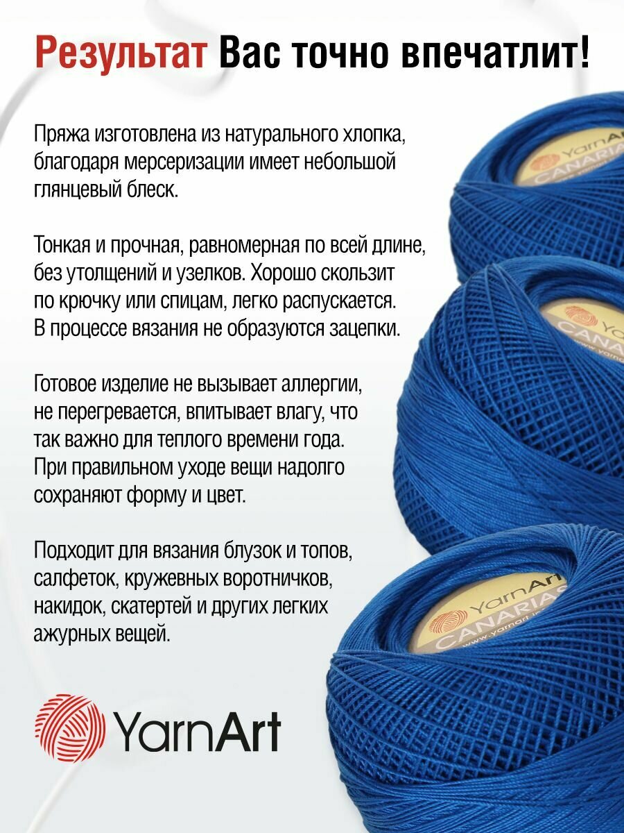 Пряжа YarnArt Canarias ярко-синий (4915), 100%мерсеризованный хлопок, 203м, 20г, 1шт