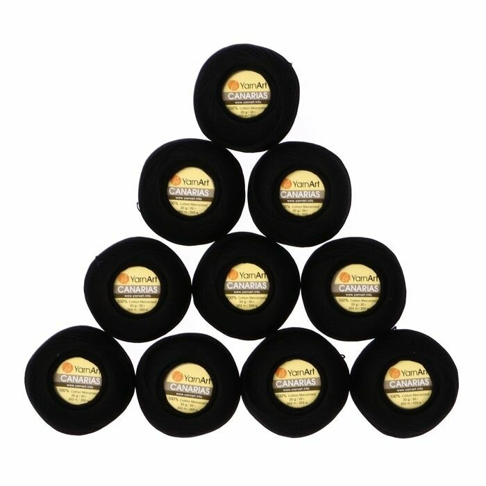 Пряжа для вязания YarnArt 'Canarias', 20г, 203м (100% мерсеризированный хлопок) (9999 черный), 10 мотков