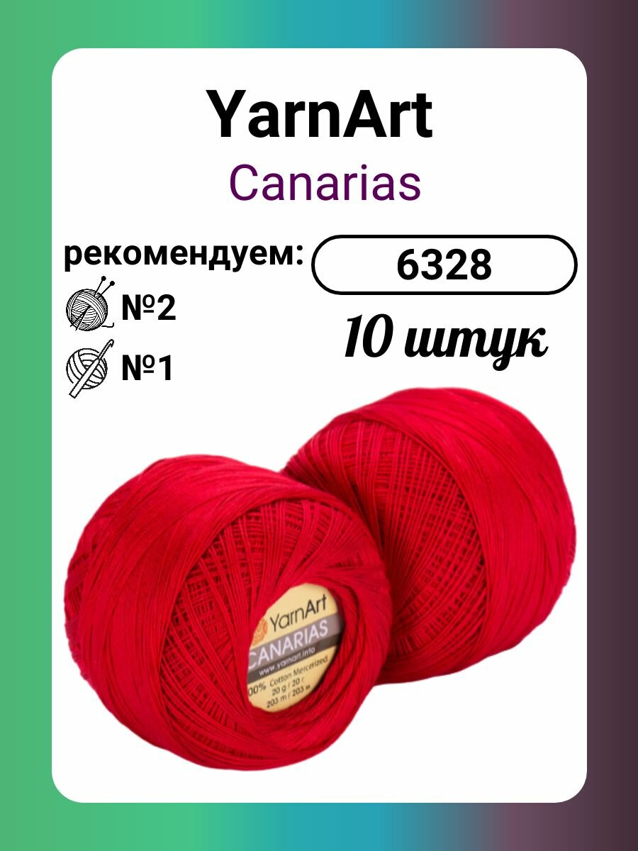 Пряжа CANARIAS (YarnArt), красный - 6328, 100% мерсеризованный хлопок, 10 мотков, 20 г, 203 м.