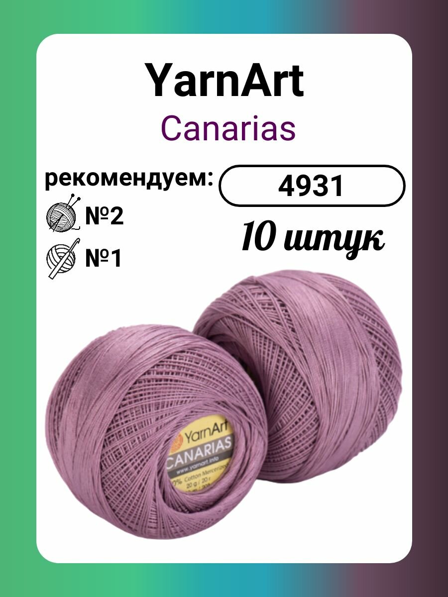 Пряжа CANARIAS (YarnArt), пыл. сирень - 4931, 100% мерсеризованный хлопок, 10 мотков, 20 г, 203 м.
