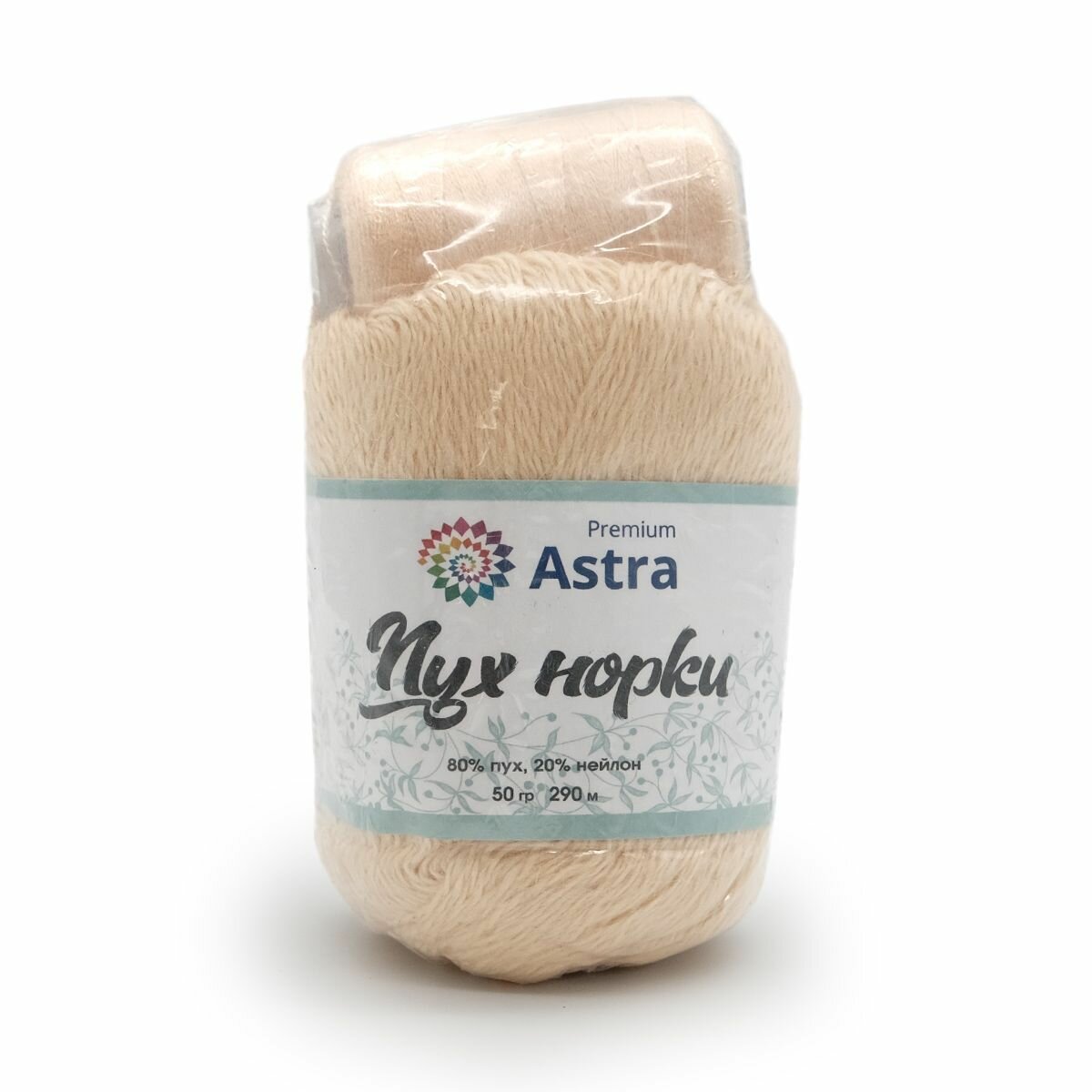 Пряжа Astra Premium "Пух норки", 50 гр 290 м, 80% пух, 20% нейлон, нить 20 гр, 065 кремовый