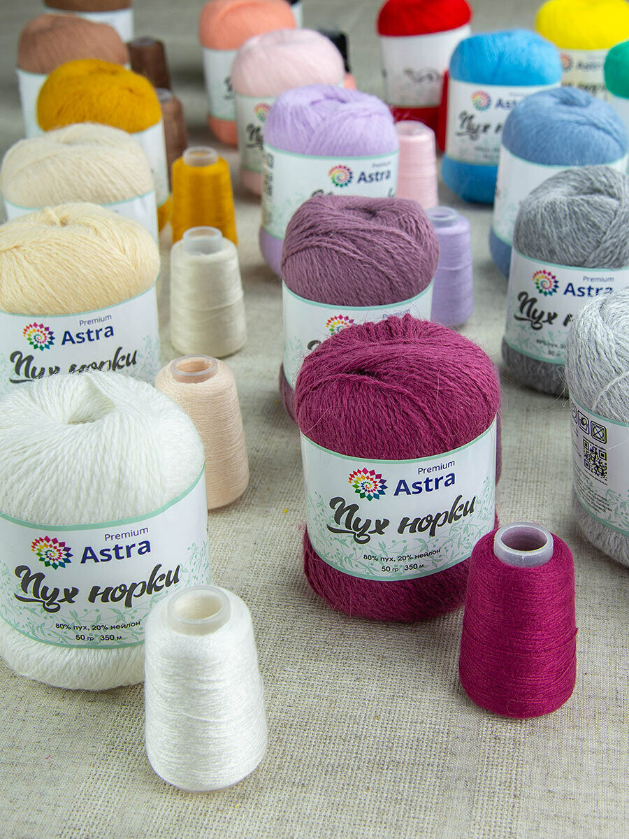 Пряжа Astra Premium "Пух норки", 50 гр 290 м, 80% пух, 20% нейлон, нить 20 гр, 065 кремовый