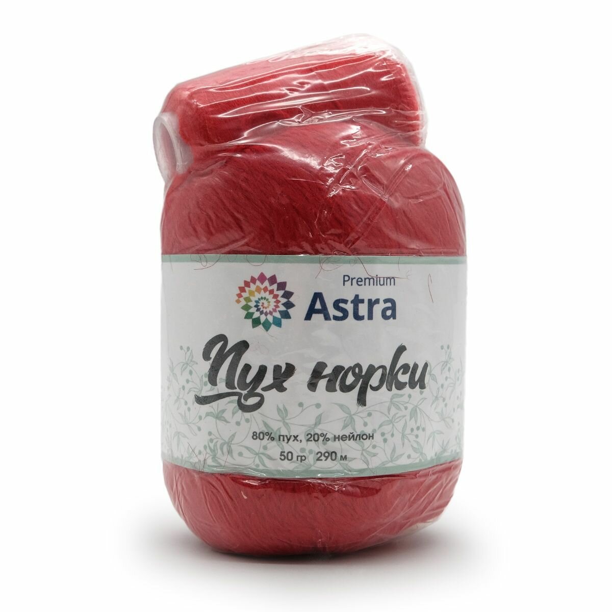 Пряжа для вязания Astra Premium 'Пух норки' 50г, 290м +нить 20г (80% пух, 20% нейлон)(010 ярко-красный)