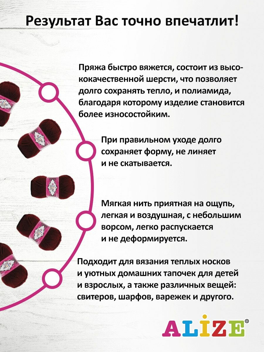 СохранитьПряжа Alize Superwash comfort socks бордовый (578), 75%шерсть/25%полиамид, 420м, 100г, 5шт интересное: