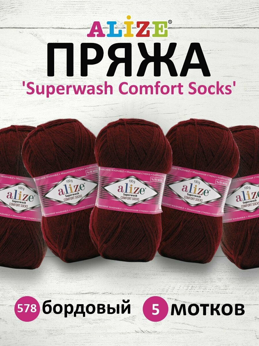 Купить Пряжа Alize Superwash comfort socks бордовый (578), 75%шерсть/25%полиамид, 420м, 100г, 5шт