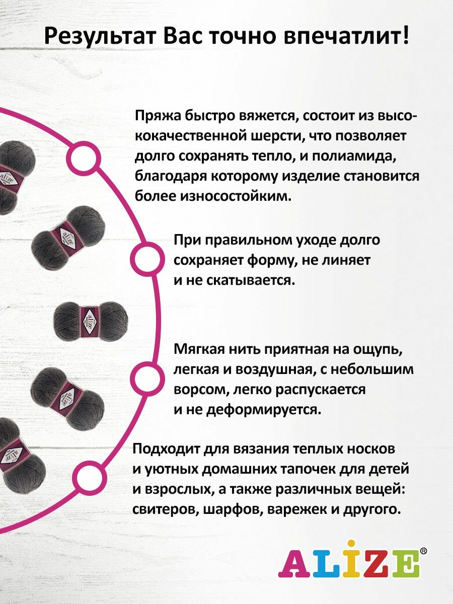 СохранитьПряжа Alize Superwash 100 темно-серый меланж (182), 75%шерсть/25%полиамид, 420м, 100г, 5шт интересное: