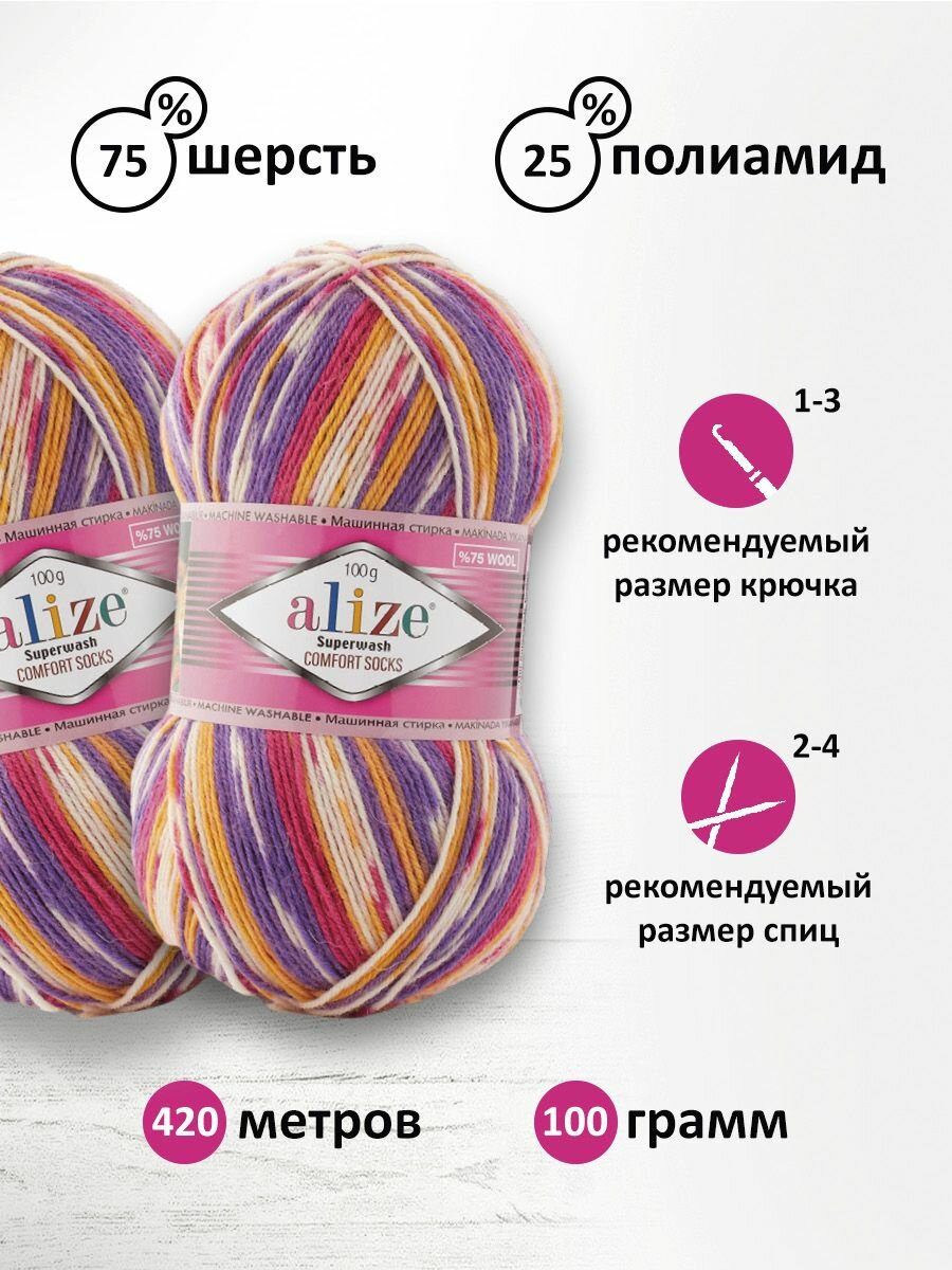 Пряжа Superwash Comfort Socks Alize (7677), 100г, 420м, 75% шерсть, 25% полиамид (1 шт.)