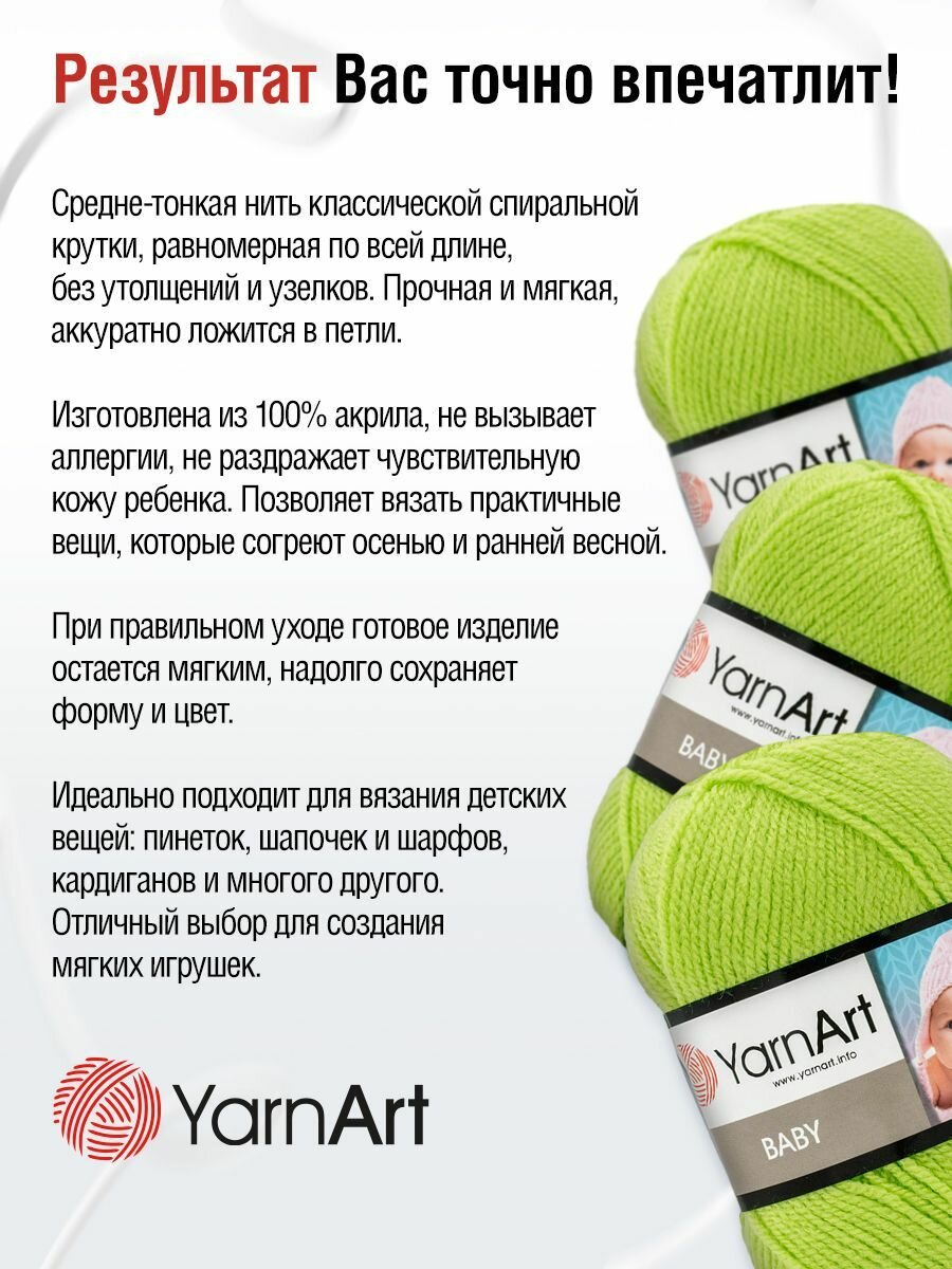 Пряжа для вязания YarnArt Baby (ЯрнАрт Беби) - 1 моток 13854 салатовый, гипоаллергенная для детских изделий, 100% акрил, 150м/50г