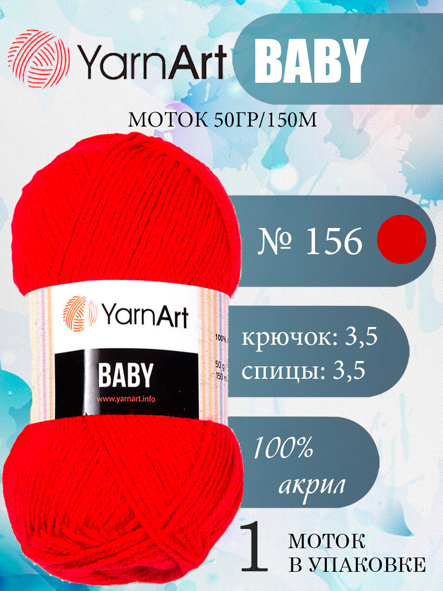 Пряжа для вязания YarnArt Baby (ЯрнАрт Беби) - 1 моток 156 красный, гипоаллергенная для детских изделий, 100% акрил, 150м/50г