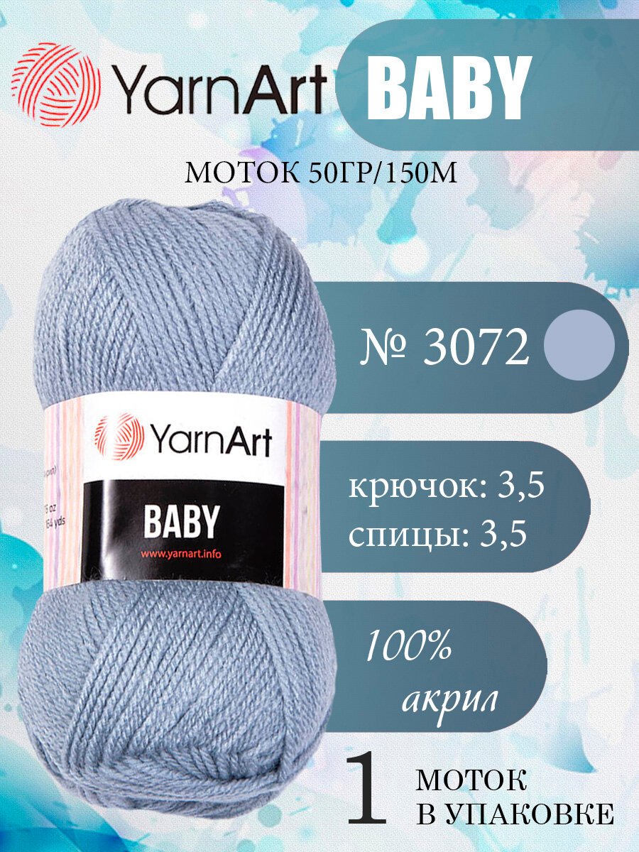 Купить Пряжа Yarnart Baby серый (3072), 100%акрил, 150м, 50г, 1шт