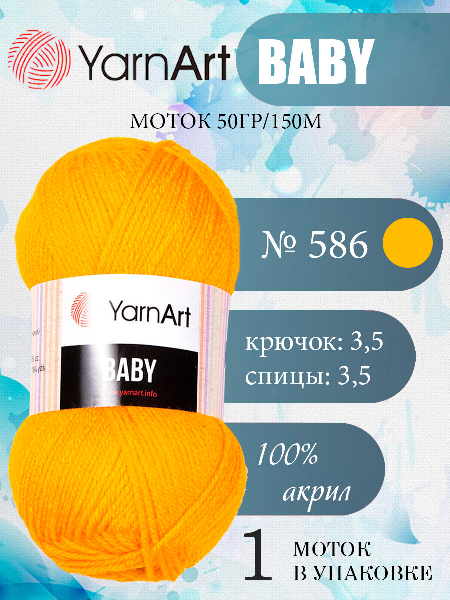 Купить Пряжа Yarnart Baby ярко-желтый (586), 100%акрил, 150м, 50г, 1шт
