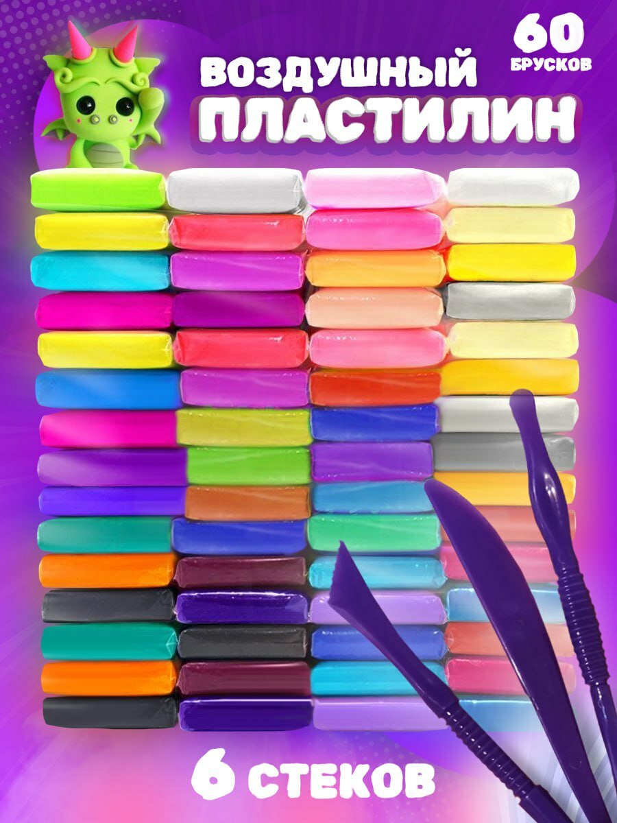 Купить Набор для лепки. Воздушный пластилин 60шт. Масса для лепки.