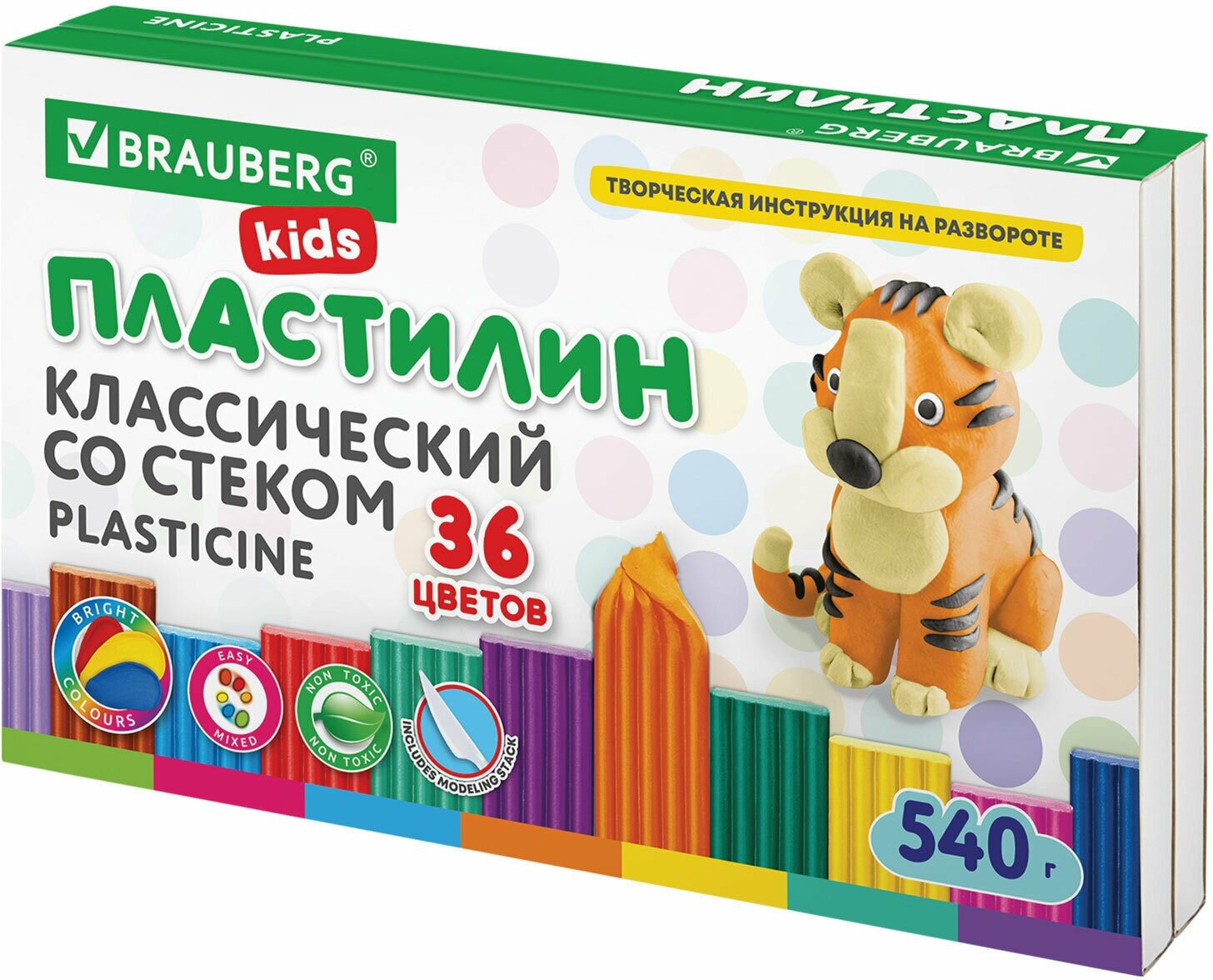 Пластилин Brauberg "Kids", 36 цв., 540г, со стеками
