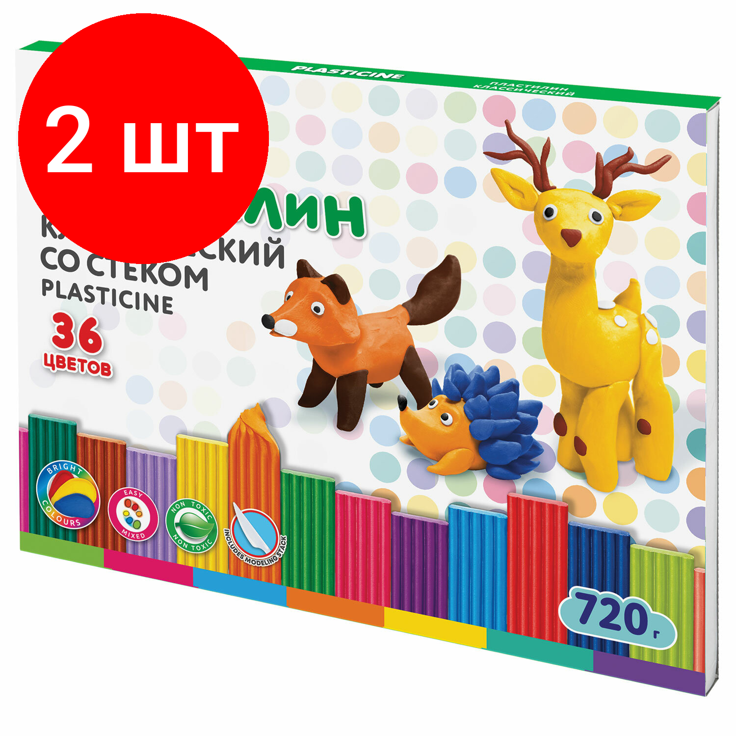 Купить Комплект 2 шт, Пластилин классический BRAUBERG KIDS, 36 цветов, 720 г, стек, высшее качество, 106438