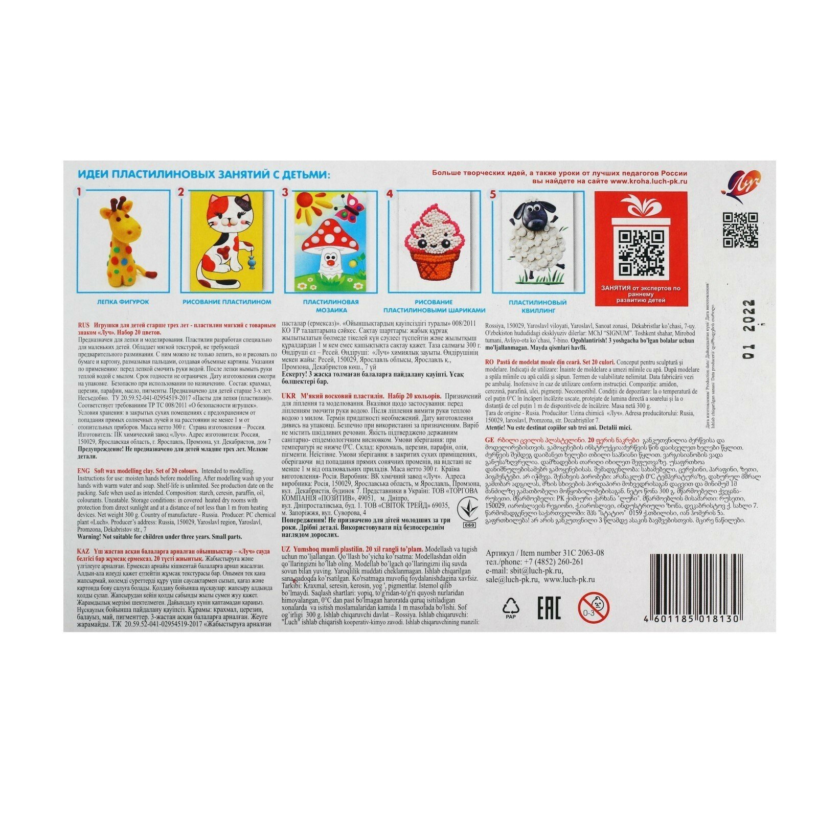 Пластилин мягкий (восковой) 20 цветов "Кроха", 300 г интересное: