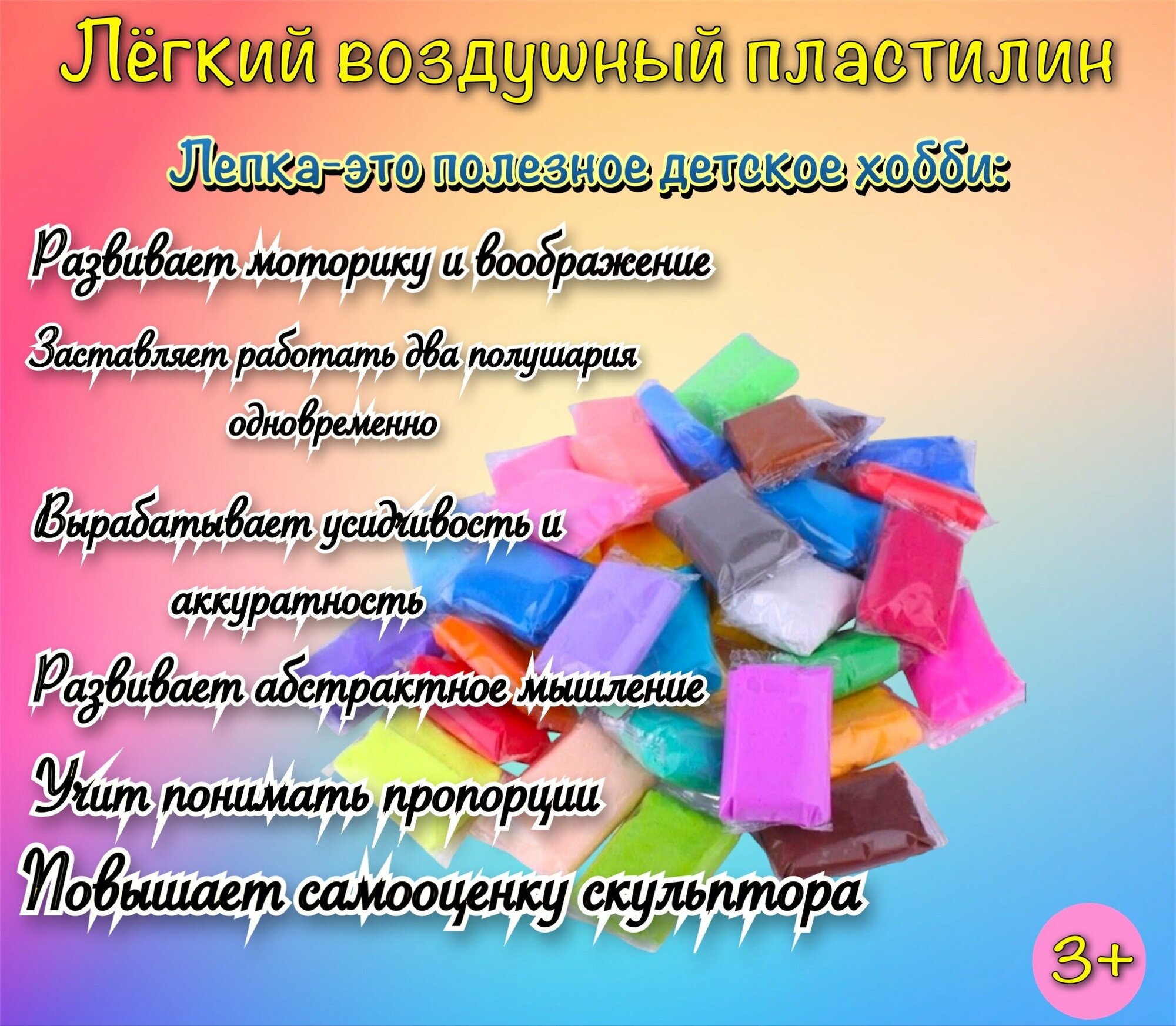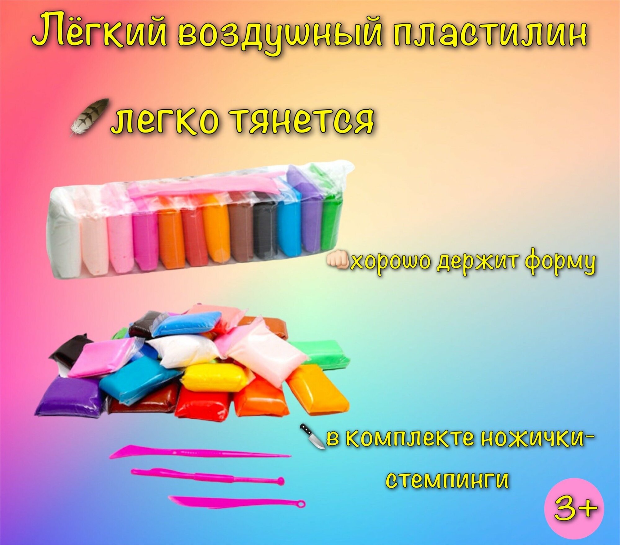Воздушный мягкий пластилин набор 60 штук интересное: