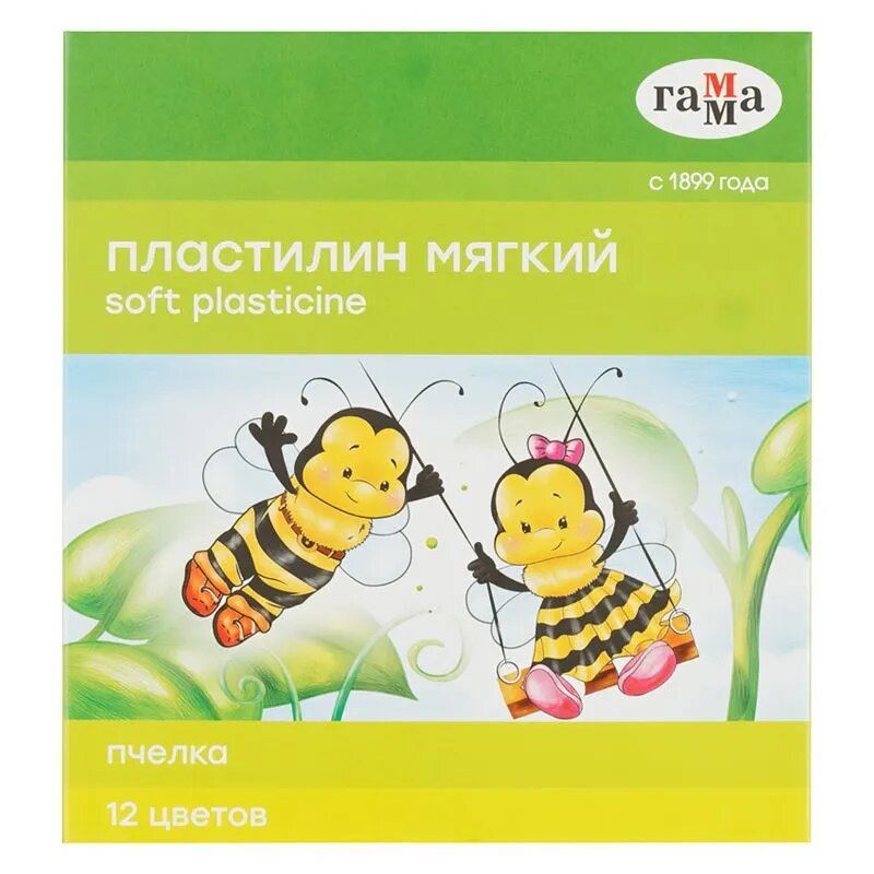 Купить Пластилин для лепки Гамма "Пчелка" восковой мягкий детский, 12 цветов, со стеком / Набор для развития и творчества детей в школу и детский сад