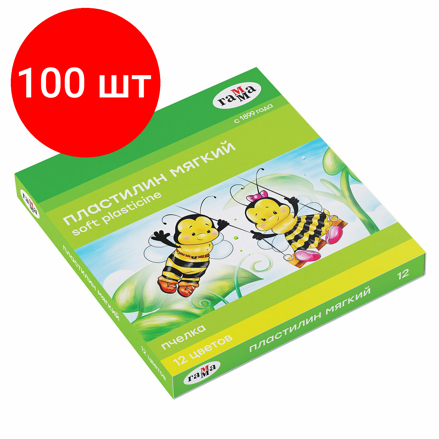 Купить Комплект 100 шт, Пластилин восковой гамма "Пчелка", 12 цветов, 180 г, со стеком, картонная упаковка, 280032Н